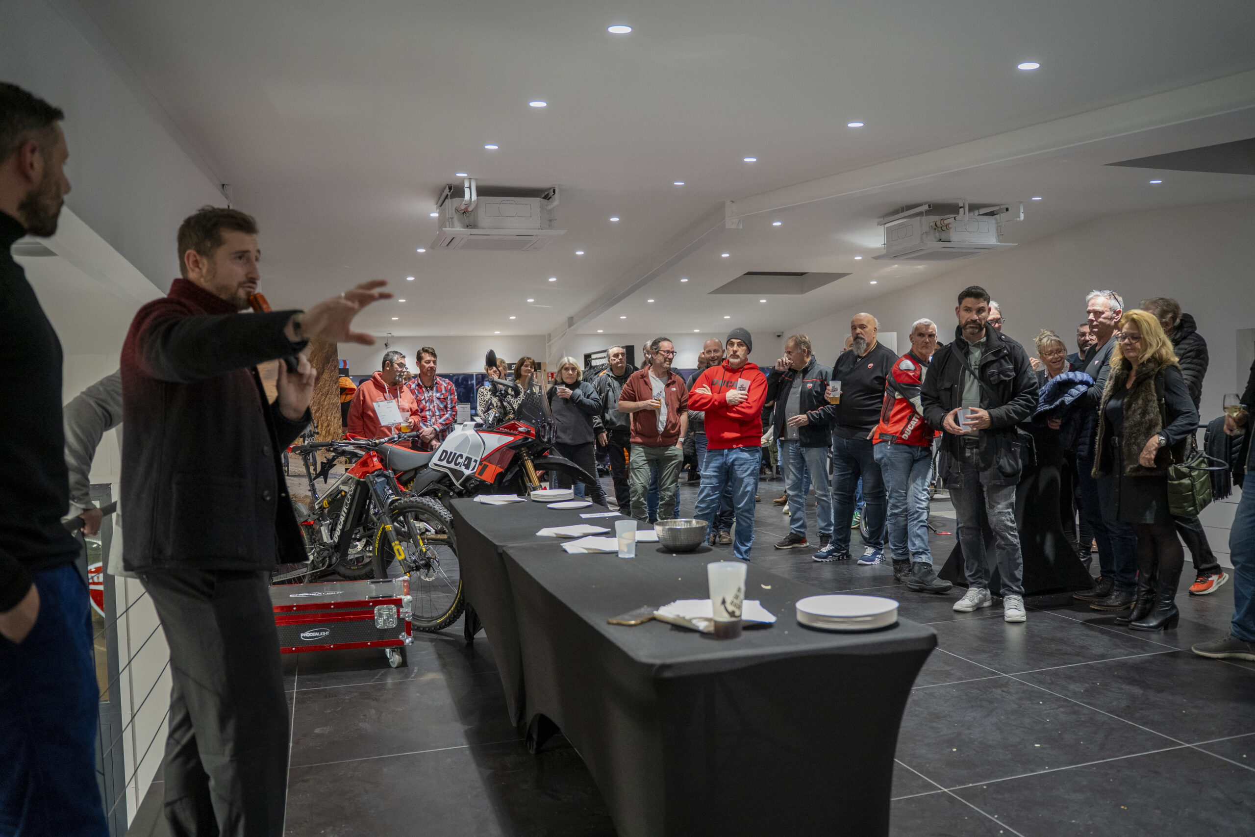 Lors de cette soirée exclusive, Thibault a tenu à présenter ses vœux aux clients Ducati présents. Un moment fort, empreint de proximité et d’authenticité, qui illustre parfaitement la relation de confiance entretenue depuis de nombreuses années entre le Groupe Roure et la communauté Ducati.
