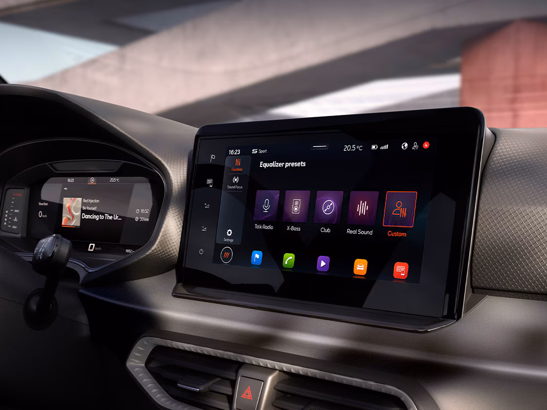 Profitez de chaque détail de ce nouvel intérieur élégant et audacieux. Des selleries ultraconfortables qui vous offrent une sensation d’exclusivité. L’expérience de conduite devient intuitive grâce au volant en cuir avec méplat, à l’écran multimédia et à un tableau de bord redessiné.